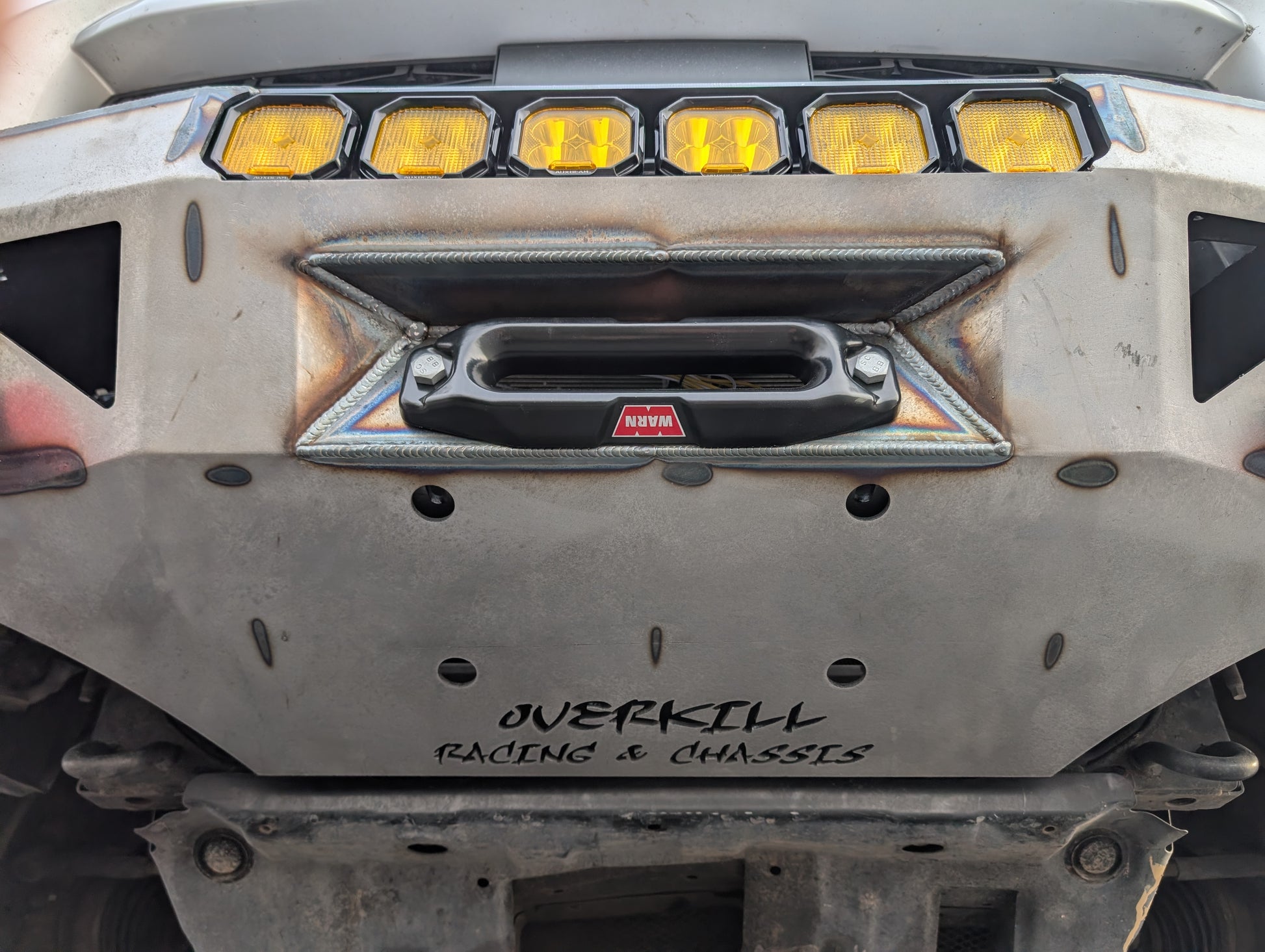 Different light bezel cutouts are available designed for 6 light pods (Auxbeam shown, Baja Designs Squadron, Rigid, etc.) If you are interested in a light bar setup instead, shoot us an email and we can look at making something work for you!